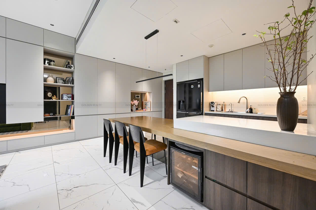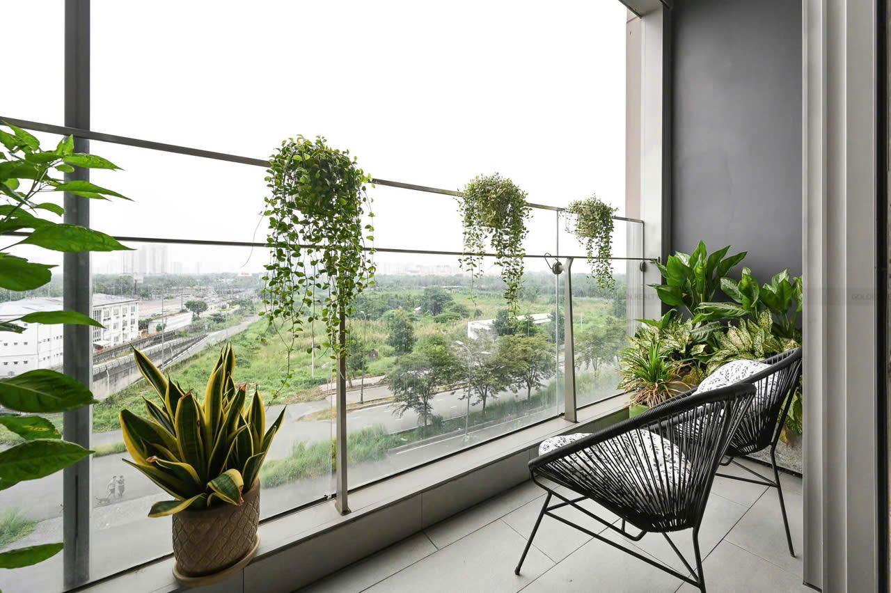Căn hộ sở hữu thiết kế hiện đại, không gian sống thoáng đãng với cửa kính lớn giúp đón trọn ánh sáng tự nhiên và gió trời. View mở rộng, không bị chắn, mang lại cảm giác dễ chịu và riêng tư cho gia chủ. Phòng khách rộng rãi, kết nối liền mạch với khu bếp mở, tạo nên tổng thể hài hòa và tiện nghi cho sinh hoạt hằng ngày.