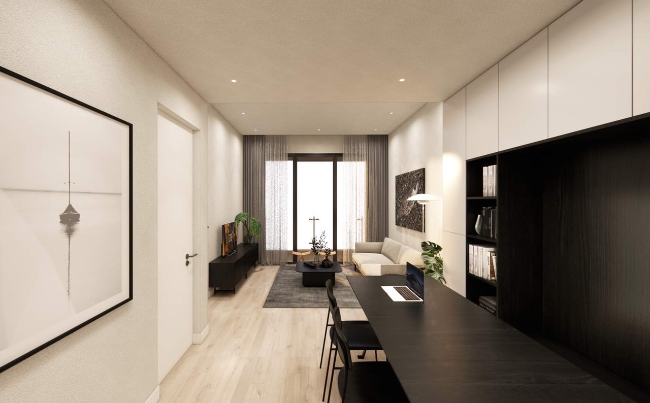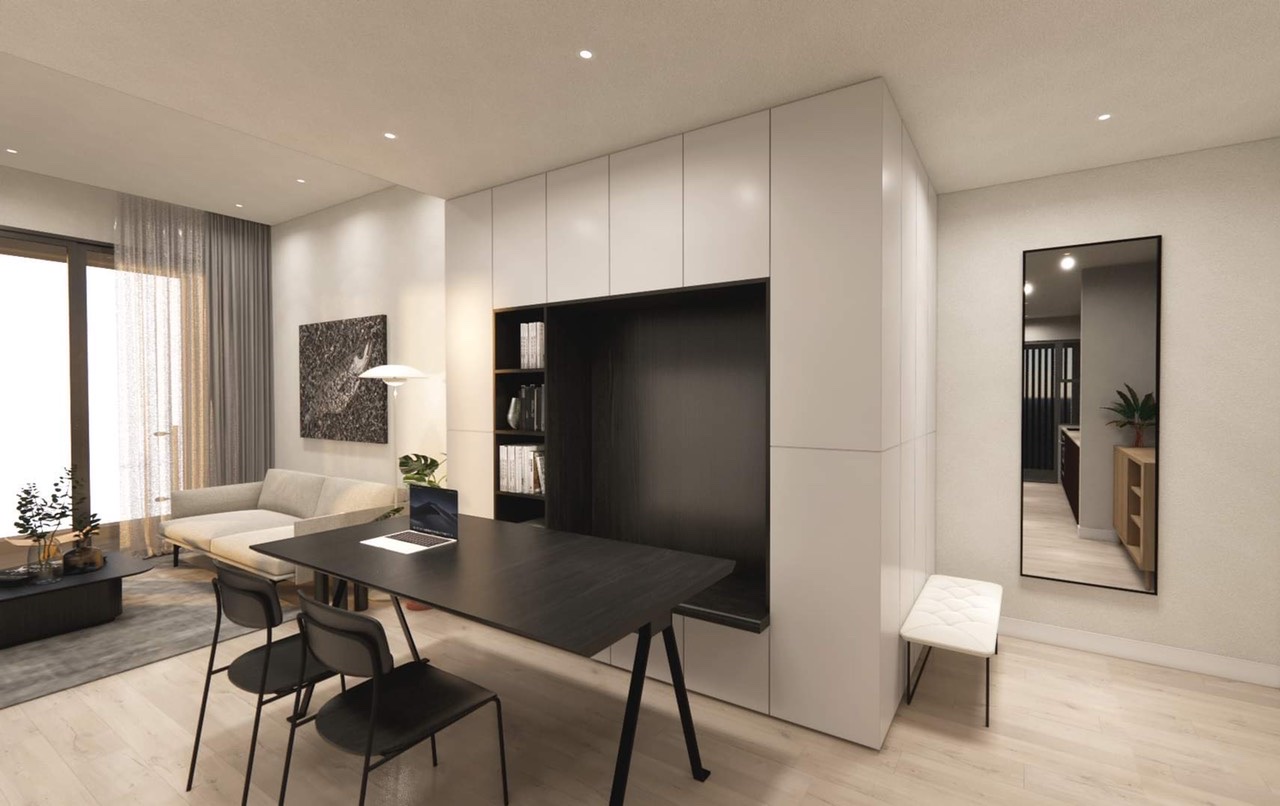 Căn hộ có diện tích 64m², thiết kế 1 phòng ngủ với không gian được bố trí khoa học, tối ưu công năng sử dụng. Phòng khách rộng rãi kết nối liền mạch với khu bếp và bàn ăn, tạo nên tổng thể hiện đại và tiện nghi.