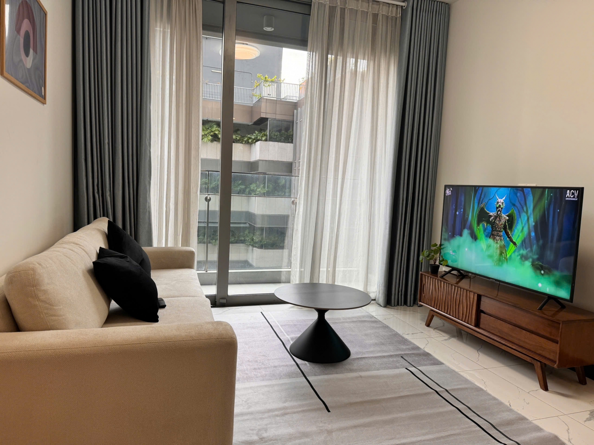 Không gian căn hộ yên tĩnh, nhiều ánh sáng tự nhiên, thích hợp cho người đi làm, chuyên gia nước ngoài hoặc các cặp đôi yêu thích phong cách sống tinh tế giữa lòng thành phố.