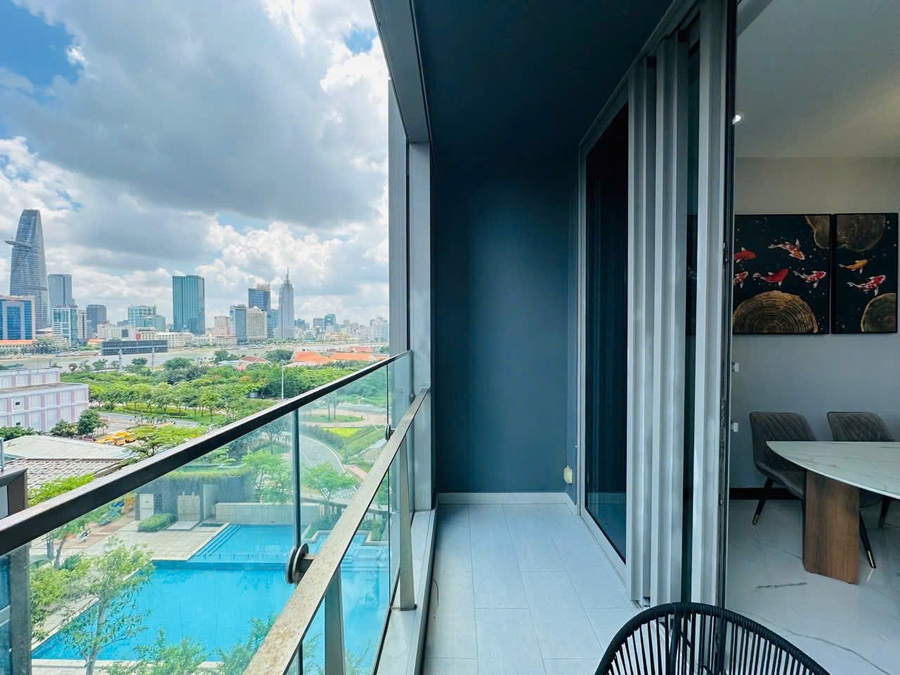 Căn hộ thuộc phân khu Linden của Empire City, nằm trong khu đô thị Thủ Thiêm hiện đại và phát triển. Không gian được thiết kế rộng rãi, phòng khách kết nối ban công lớn giúp đón ánh sáng tự nhiên và gió trời. Tầm nhìn thoáng mang lại cảm giác thư thái và sang trọng cho không gian sống.