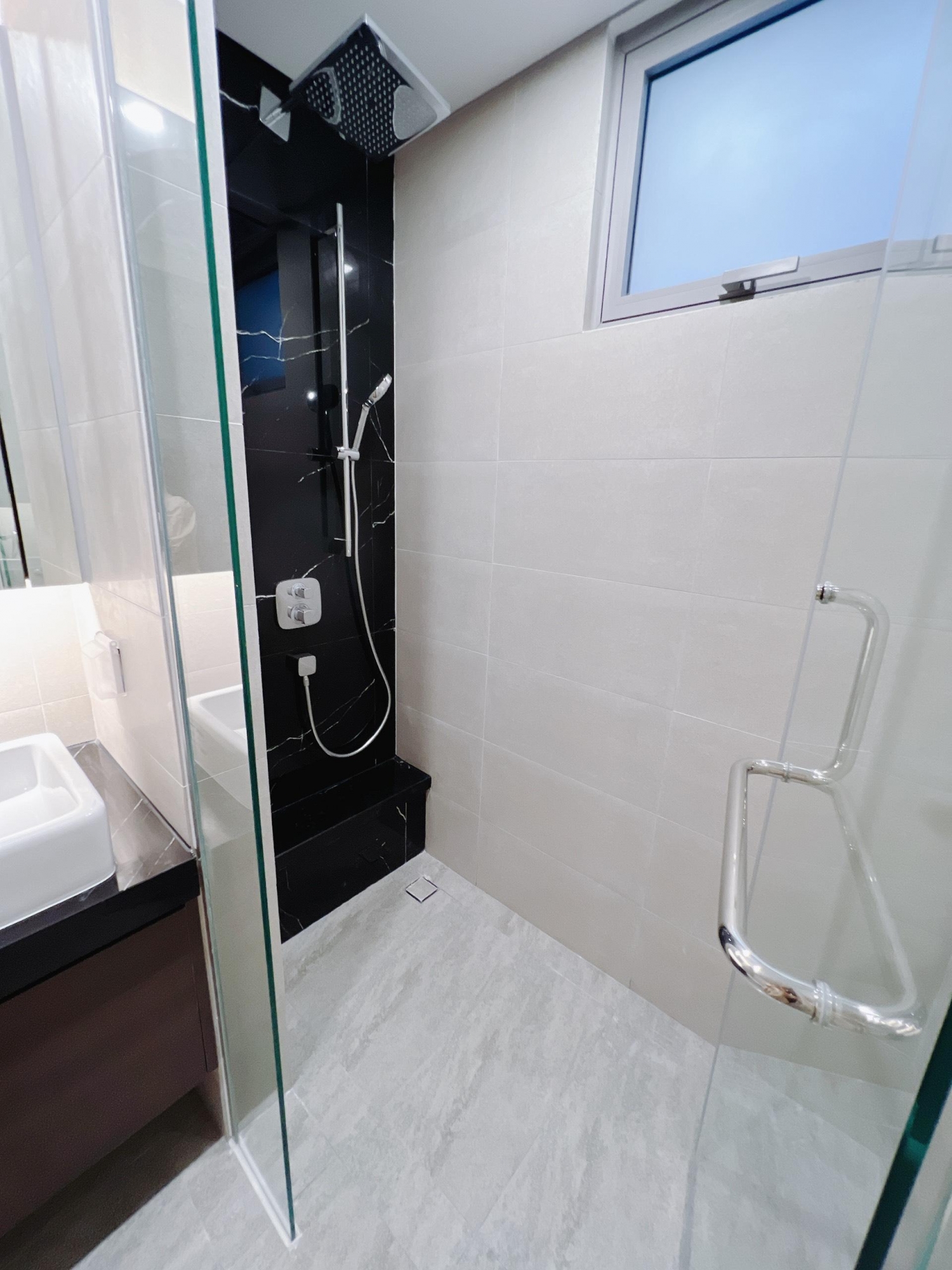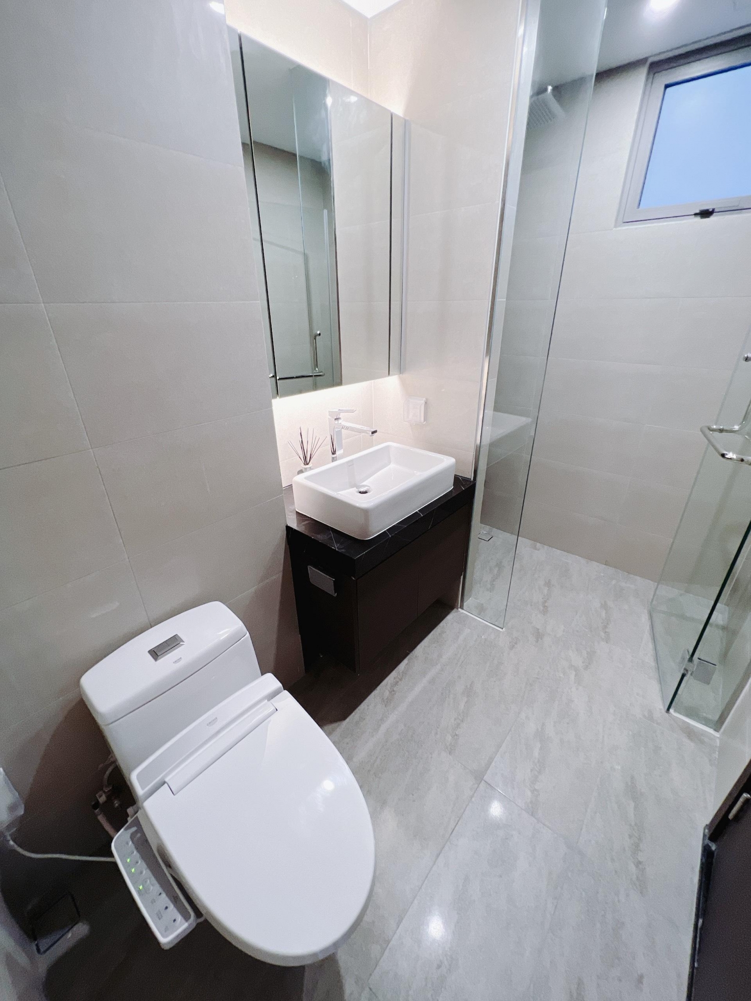 Phòng ngủ rộng rãi với giường lớn, nệm cao cấp, tủ quần áo và cửa kính lớn đón sáng tự nhiên. Phòng tắm hiện đại, sạch sẽ, trang bị thiết bị vệ sinh chất lượng cao.
