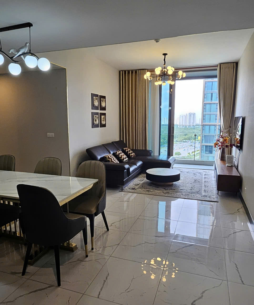 Ban công và hệ cửa kính lớn giúp căn hộ luôn ngập tràn ánh sáng tự nhiên, mang lại view thoáng, không gian sống dễ chịu và thư giãn.