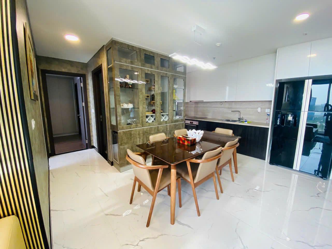 Căn hộ có bố cục 2 phòng ngủ, diện tích rộng rãi, thiết kế tối ưu công năng sử dụng. Nội thất được trang bị đầy đủ, phong cách hiện đại, màu sắc trang nhã, phù hợp cho khách thuê ở lâu dài, chuyên gia nước ngoài hoặc gia đình trẻ.