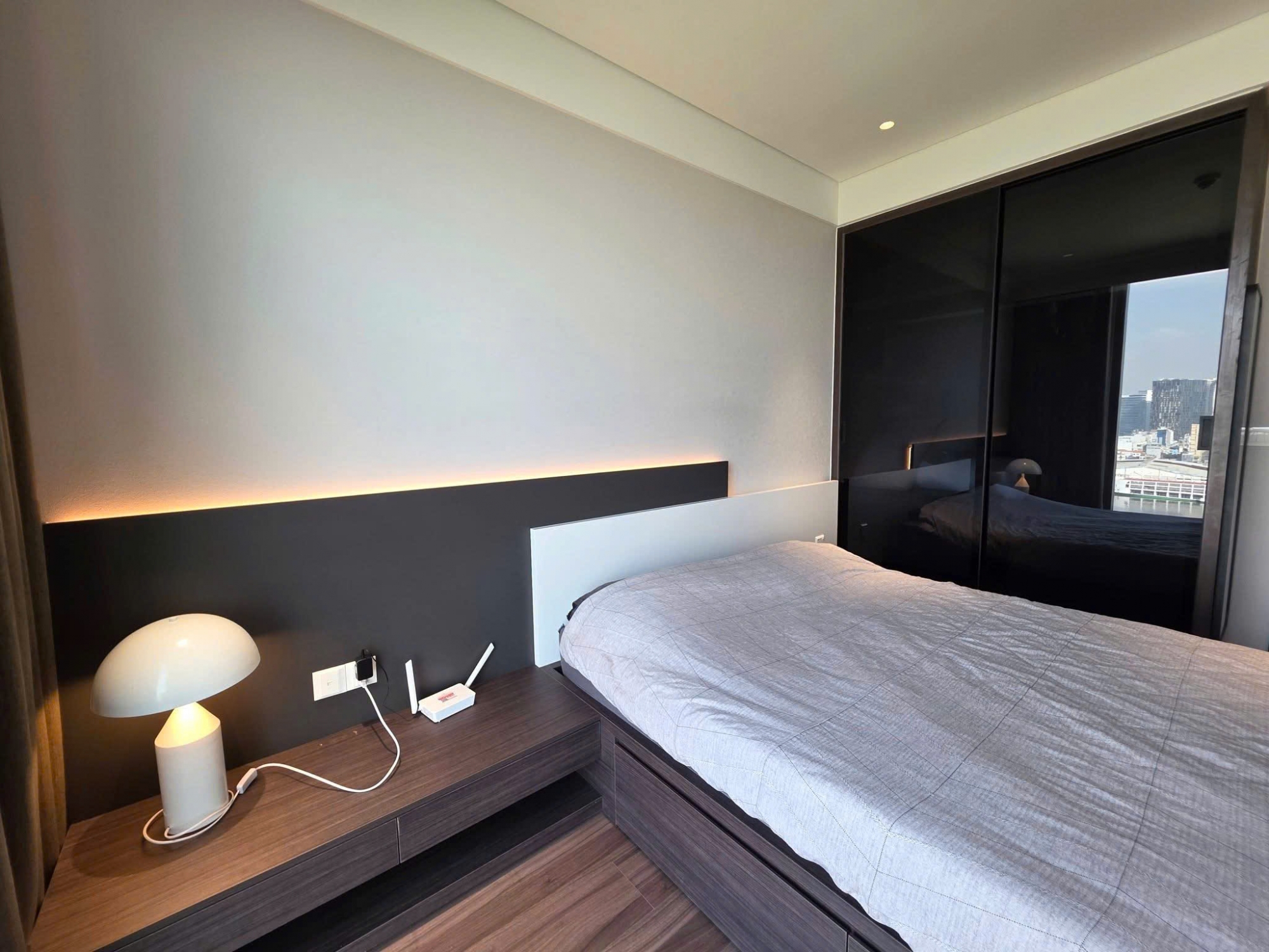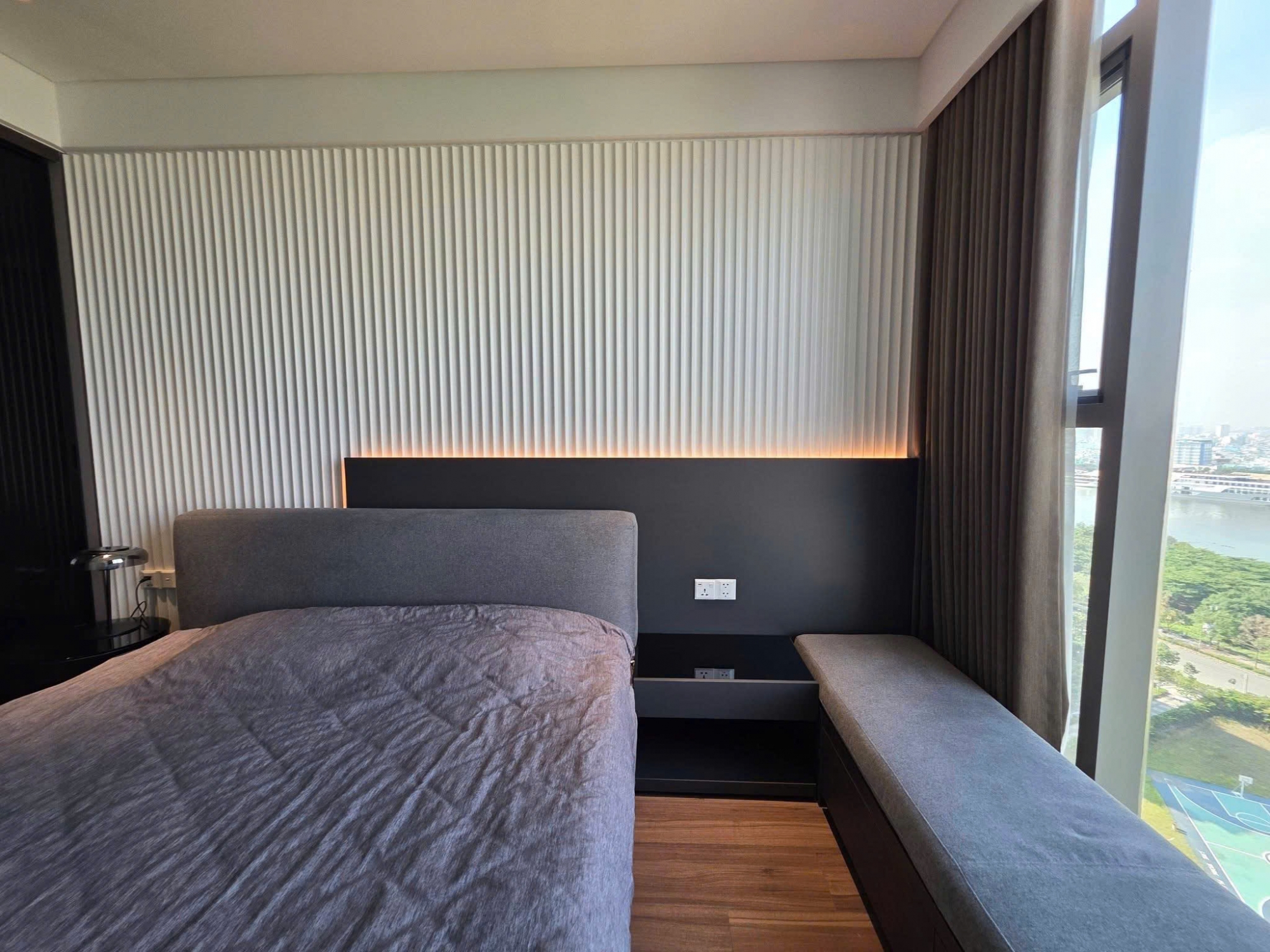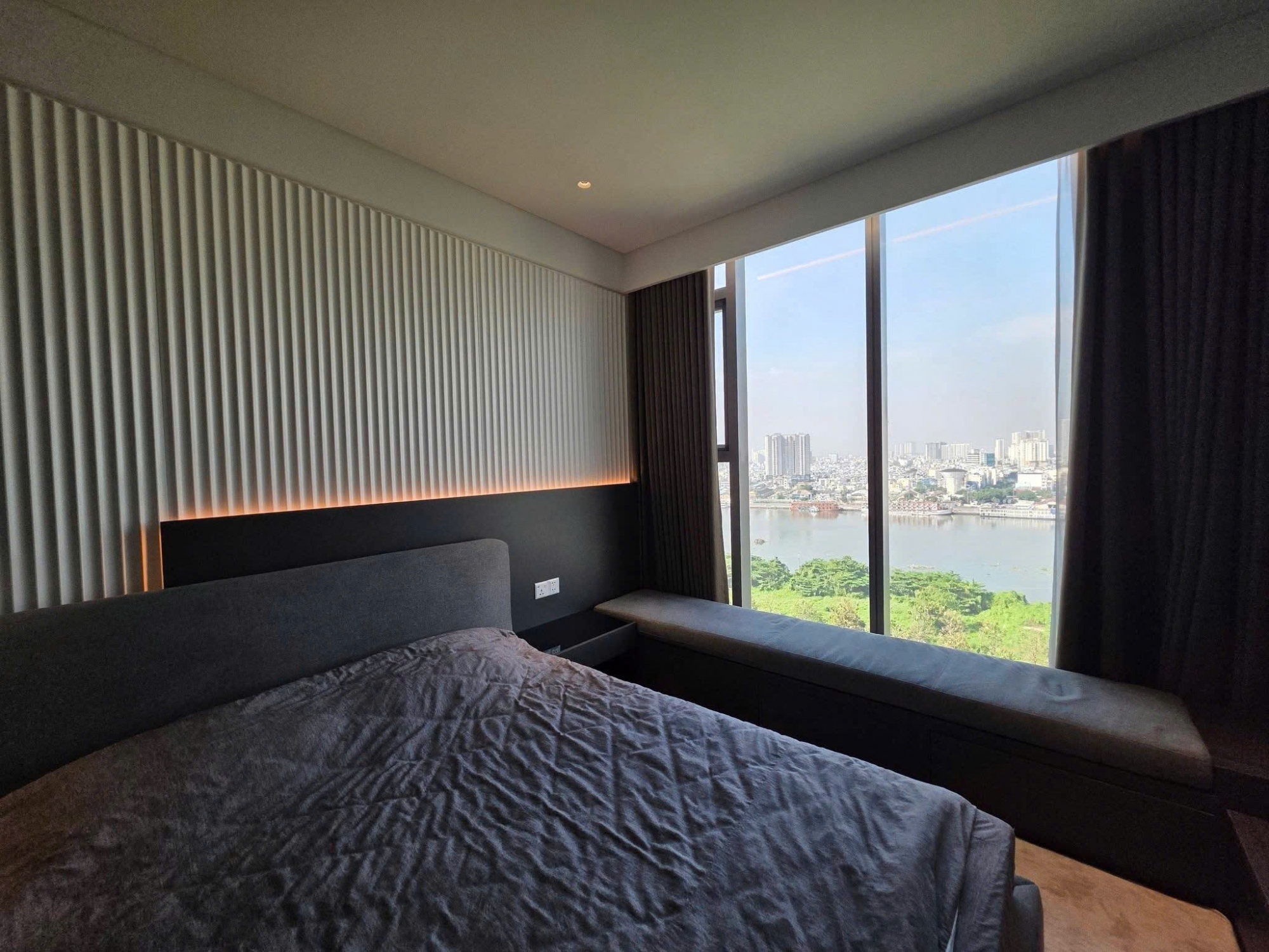 One of the highlights of this apartment is the spacious balcony with an open view of the Saigon River, providing a relaxing atmosphere and a refreshing natural breeze. It is the perfect place to enjoy a morning coffee or admire the beautiful city skyline in the evening. The kitchen area is designed in a modern and practical layout with fully equipped appliances for daily use.