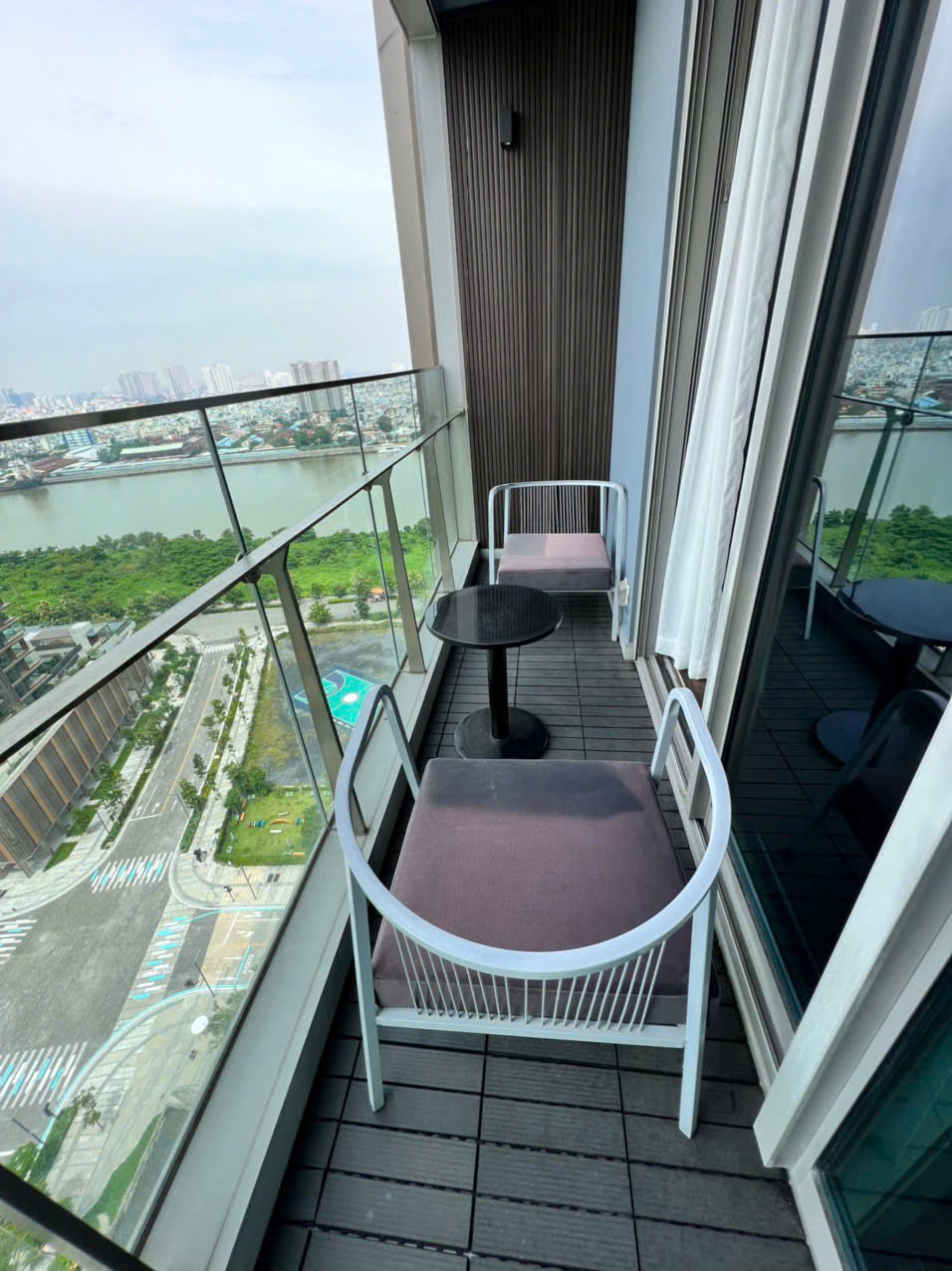 Large windows in the living room provide a calm and open river view, creating a relaxing atmosphere away from the city’s hustle while still being minutes from District 1.